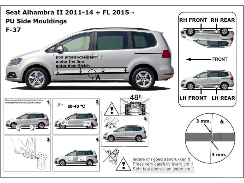Ochranné boční lišty na dveře, Seat Alhambra II, 2010-2020