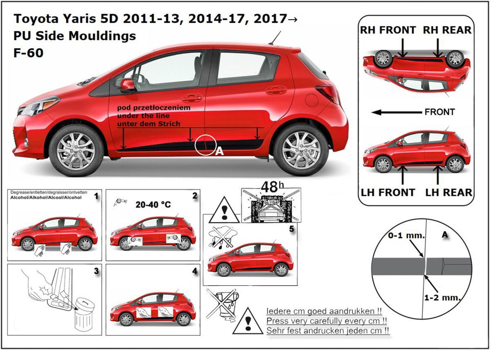 Ochranné lišty jsou vyráběny přesně na konkrétní model vozu, takže budou přesně pasovat na Váš vůz! Jejich montáž je velice snadná pomocí silně lepící pásky 3M, které je včetně odmašťovacích hadříků součástí balení. Návod na montáž.
