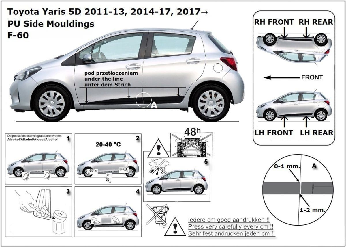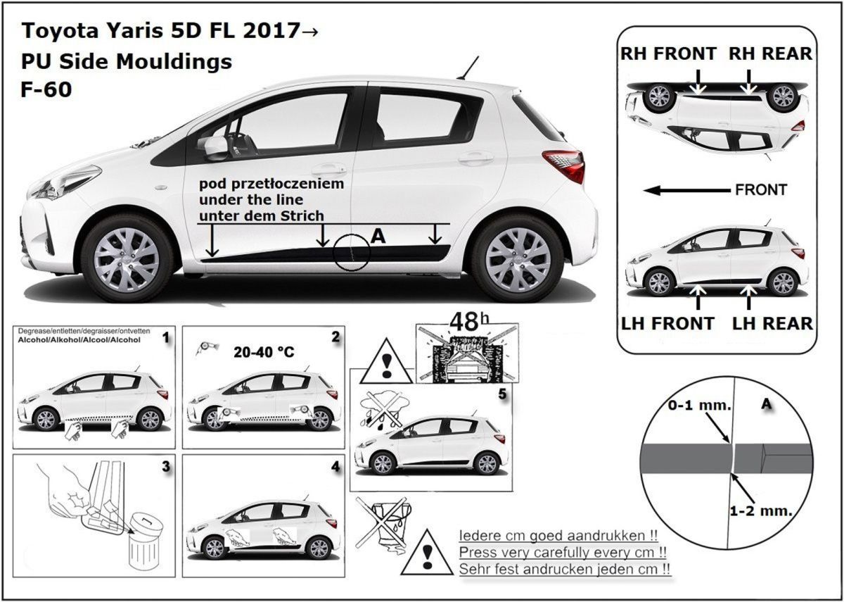 Ochranné lišty jsou vyráběny přesně na konkrétní model vozu, takže budou přesně pasovat na Váš vůz! Jejich montáž je velice snadná pomocí silně lepící pásky 3M, které je včetně odmašťovacích hadříků součástí balení. Návod na montáž.