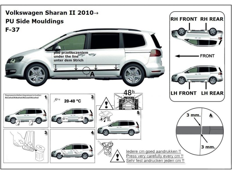 Ochranné boční lišty na dveře, VW Sharan II, 2010-2022