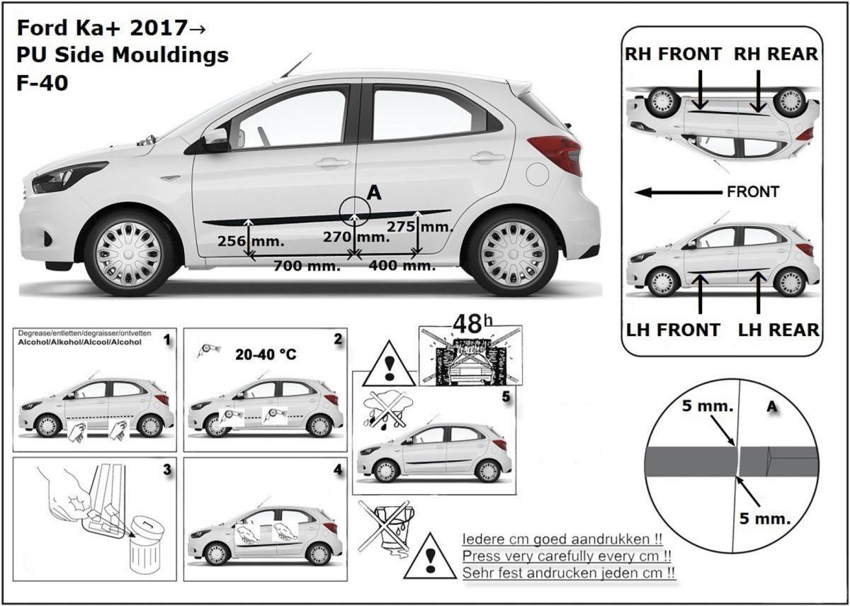 Ochranné boční lišty na dveře, Ford Ka+ III, 2016- ,