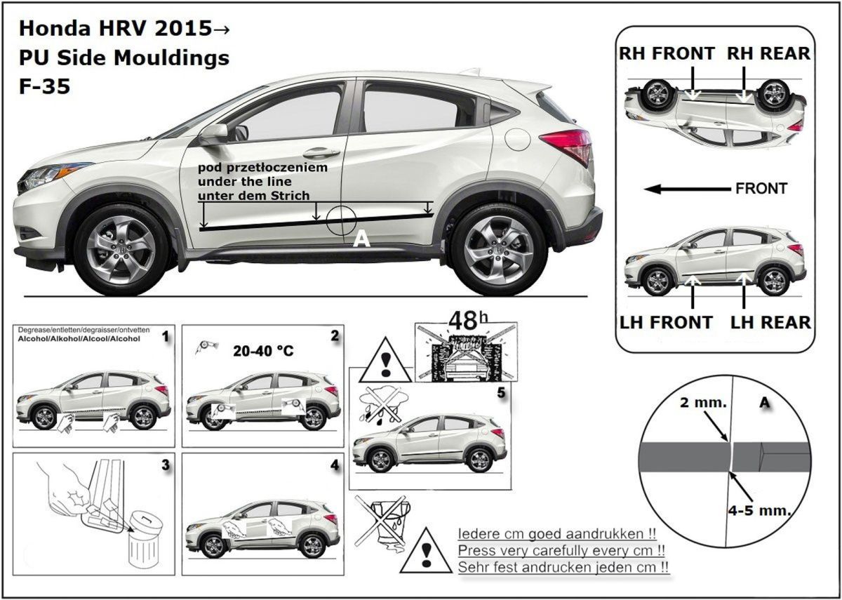 Ochranné lišty jsou vyráběny přesně na konkrétní model vozu, takže budou přesně pasovat na Váš vůz! Jejich montáž je velice snadná pomocí silně lepící pásky 3M, které je včetně odmašťovacích hadříků součástí balení. Návod na montáž.