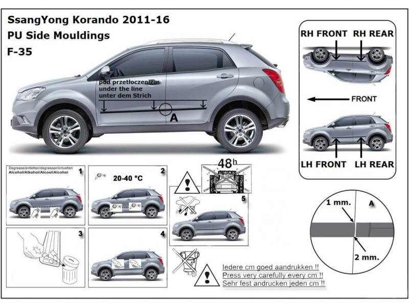 Ochranné boční lišty na dveře, Ssangyong Korando III, 2010-2019