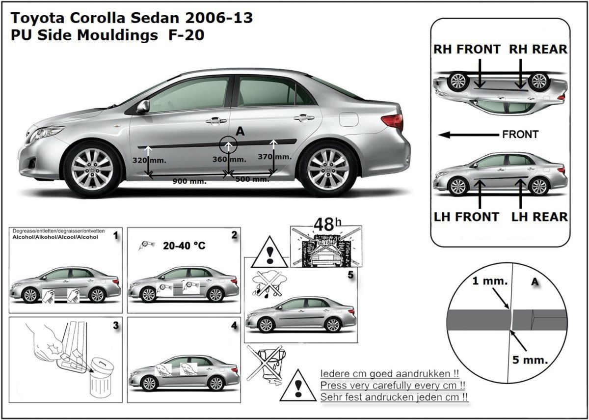Ochranné boční lišty na dveře, Toyota Corolla X, 2006-2013