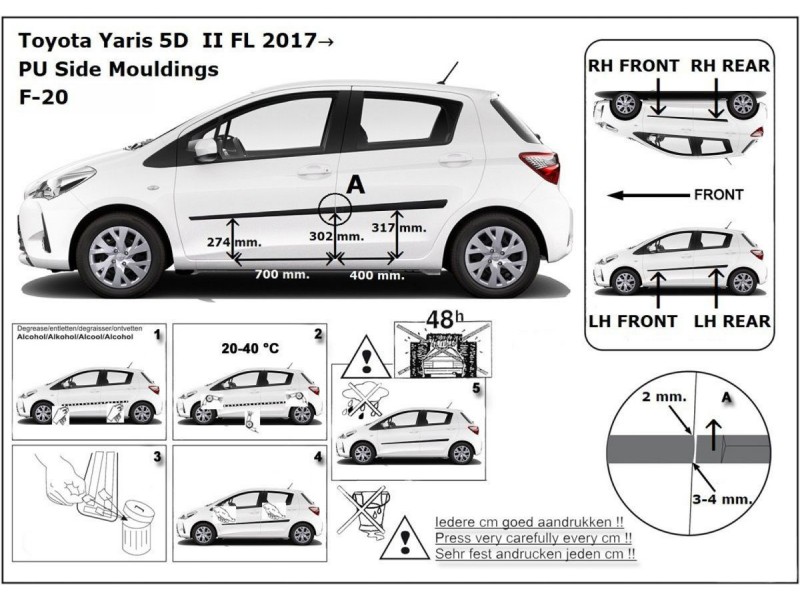 Ochranné boční lišty na dveře, Toyota Yaris III, 2017-2020, 5 dveř.