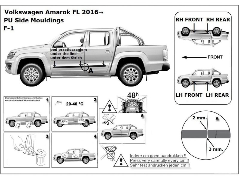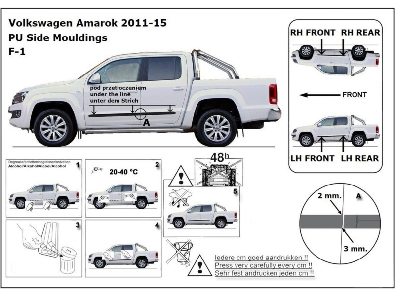 Ochranné boční lišty na dveře, VW Amarok, 2009-2022