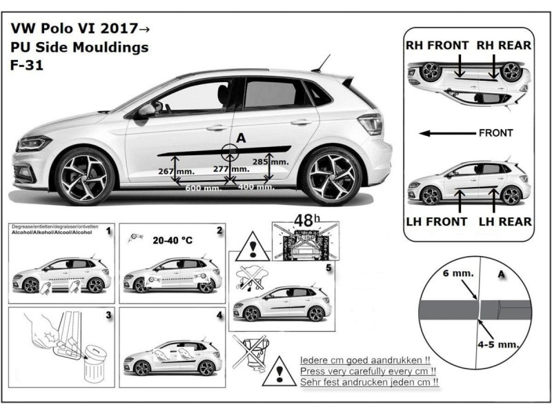 Ochranné boční lišty na dveře, VW Polo VI, 2017- ,