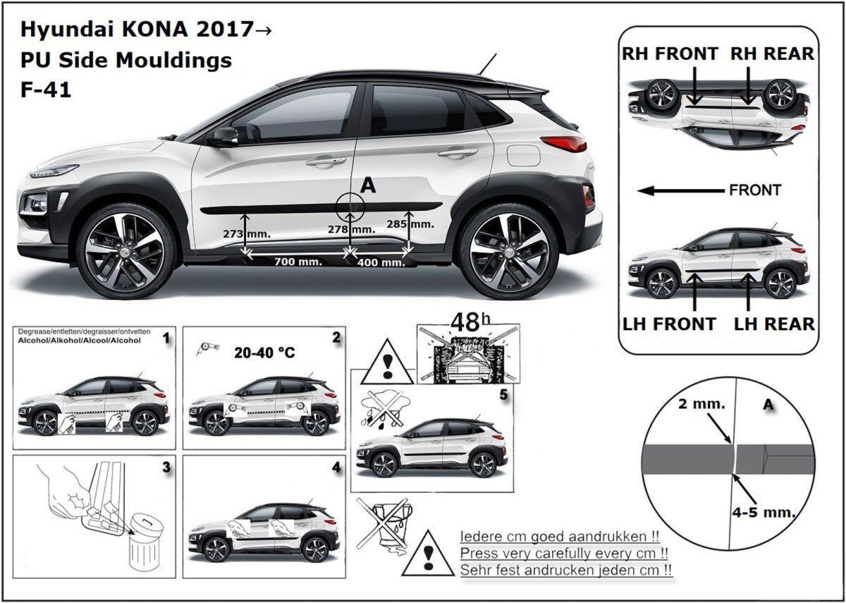 Ochranné boční lišty na dveře, Hyundai Kona, 2017-