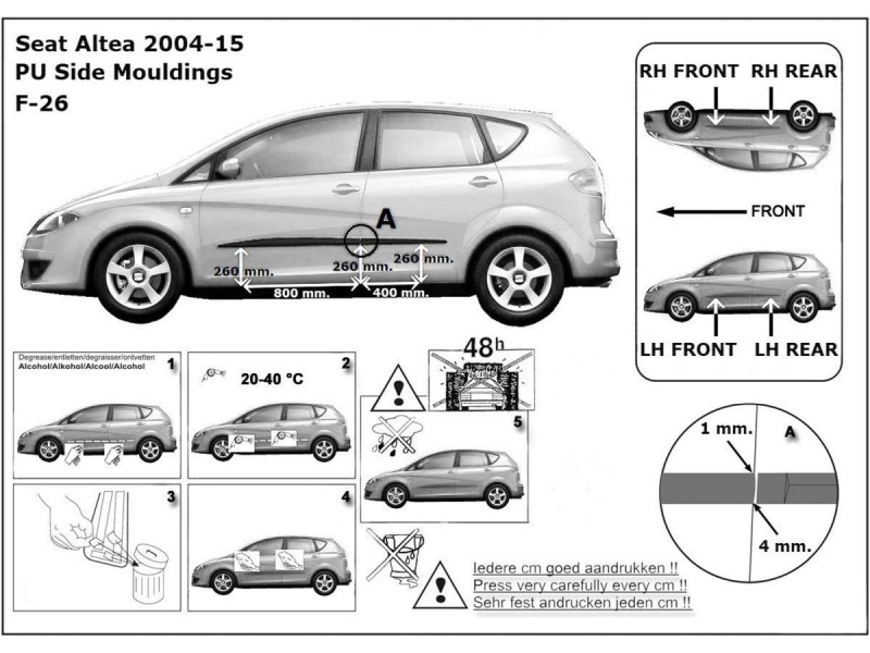 Ochranné boční lišty na dveře, Seat Altea, 2004-2015
