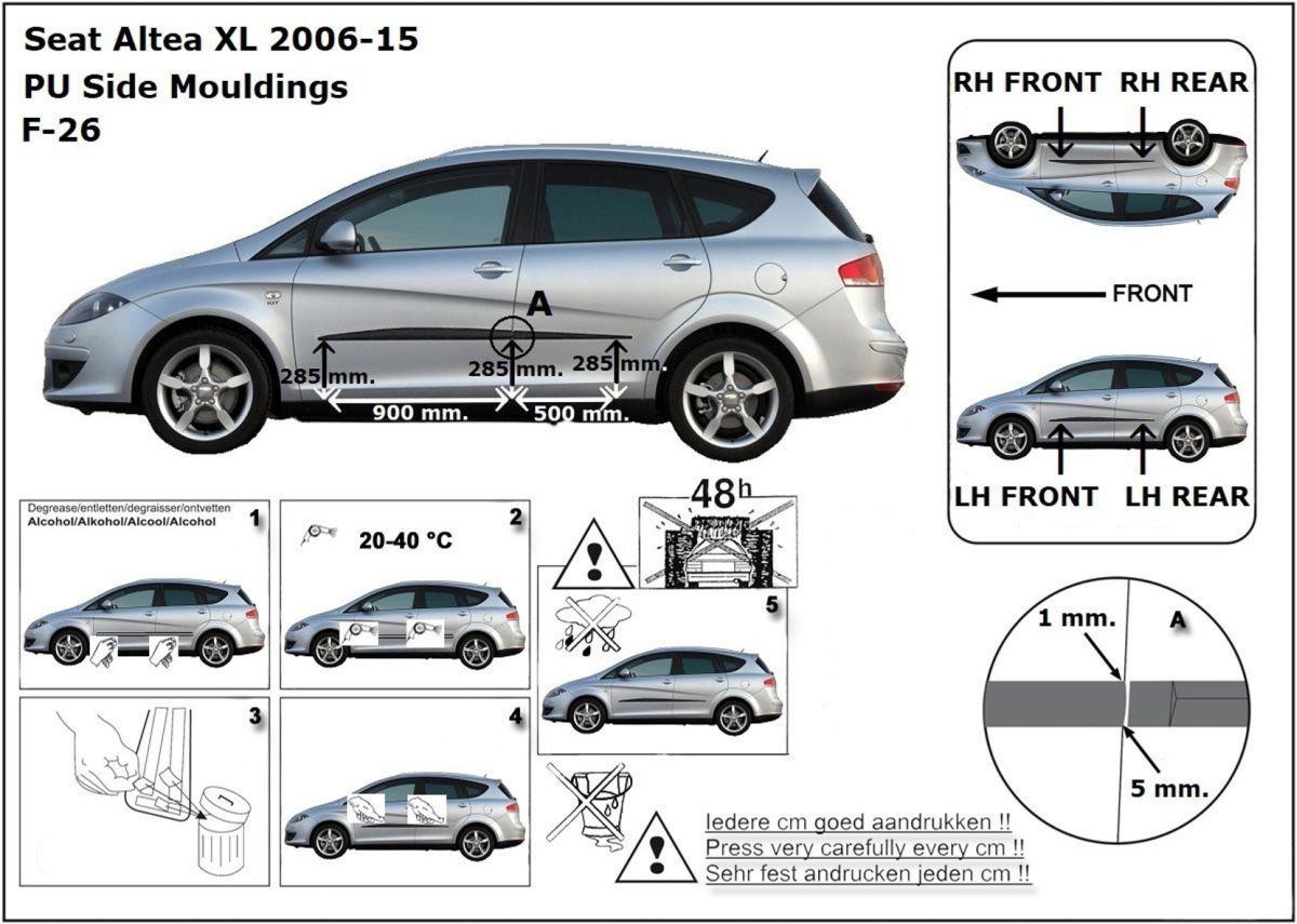 Ochranné boční lišty na dveře, Seat Altea XL, 2006-2015