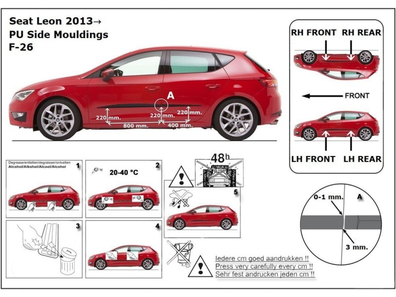 Ochranné lišty jsou vyráběny přesně na konkrétní model vozu, takže budou přesně pasovat na Váš vůz! Jejich montáž je velice snadná pomocí silně lepící pásky 3M, které je včetně odmašťovacích hadříků součástí balení. Návod na montáž.