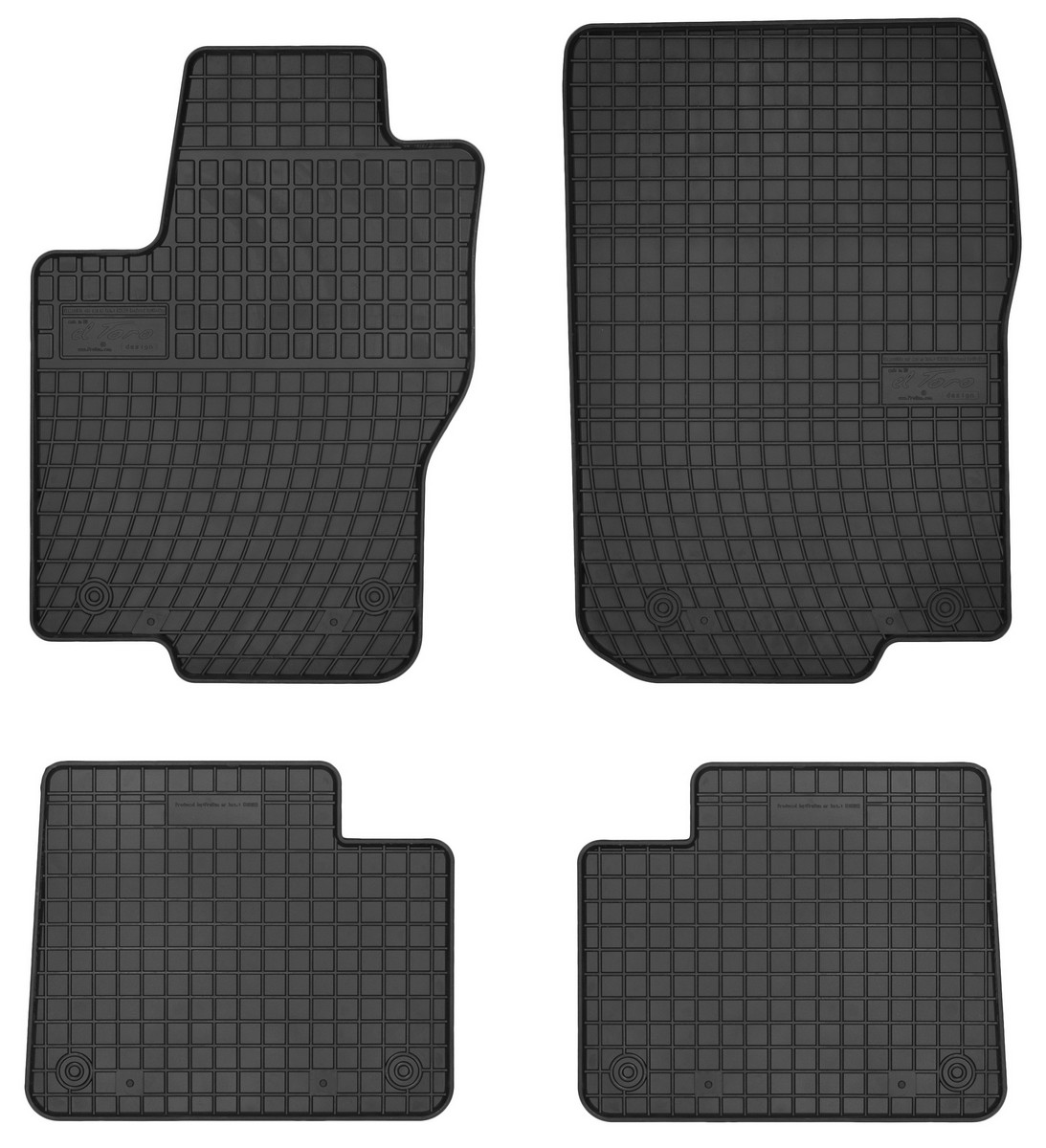 Koberce jsou vyráběny v černém provedení z kvalitní gumy, která má vysokou odolnost a životnost. Gumové rohože se velmi snadno udržují, stačí je pouze vytáhnout z auta a jednoduše opláchnout vodou. Pak stačí kobereček vytřít do sucha nebo nechat volně uschnout. Nehrozí, že by na gumě začala vznikat plíseň nebo se šířil v interiéru auta zápach.