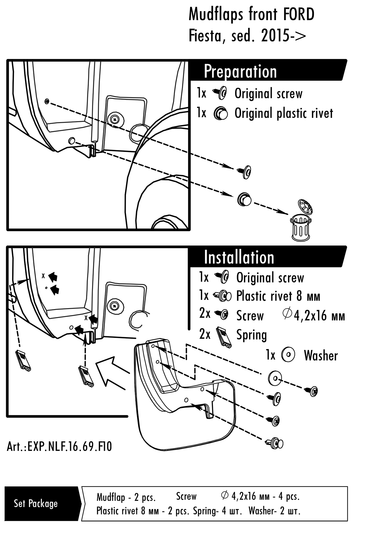 Zástěrky, lapače nečistot, Ford Fiesta, 2008-2017, Hatchback, přední
