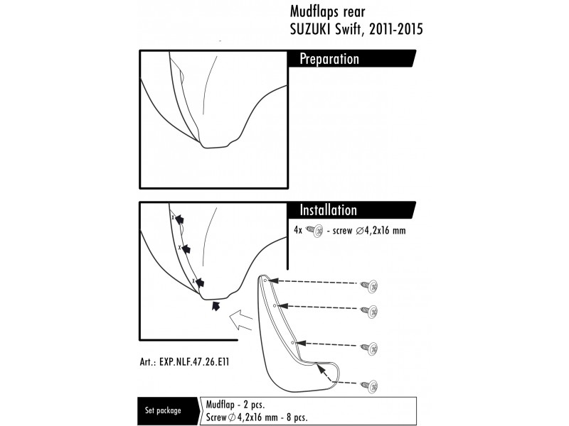 Zástěrky, lapače nečistot, Suzuki Swift, 2010-2017, přední