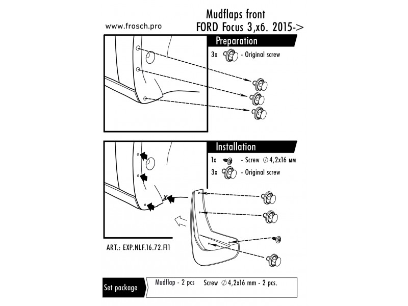 Zástěrky, lapače nečistot, Ford Focus III, 2015-2018, Facelift, HTB, přední