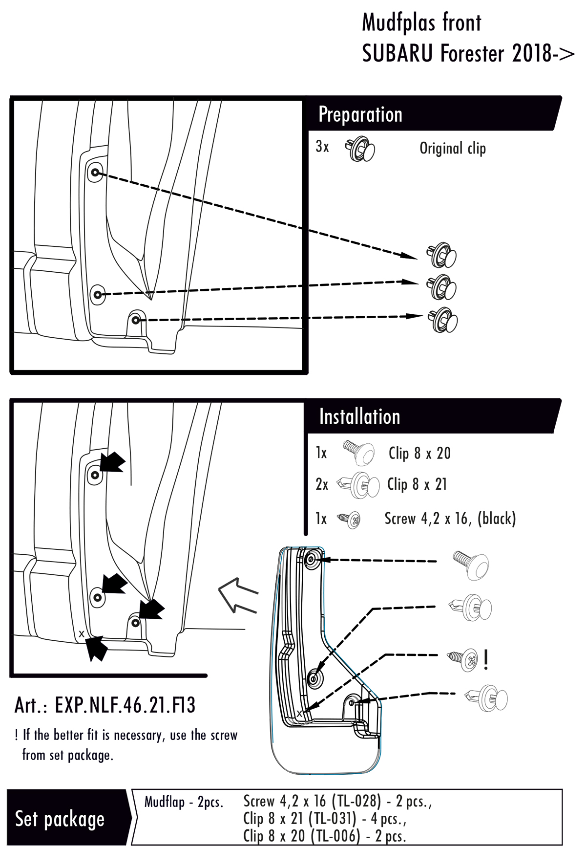 Zástěrky, lapače nečistot, Subaru Forester V, 2018- , přední