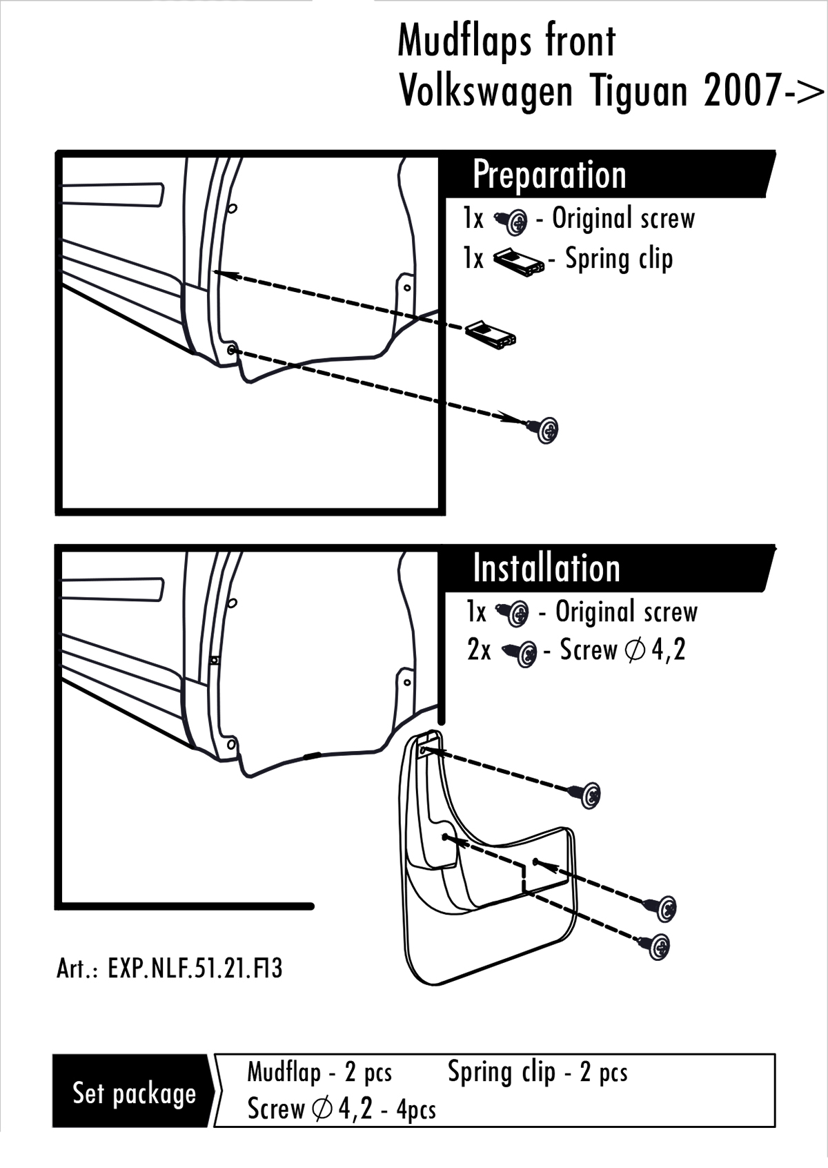 Zástěrky, lapače nečistot, Volkswagen Tiguan I, 2007-2016, přední