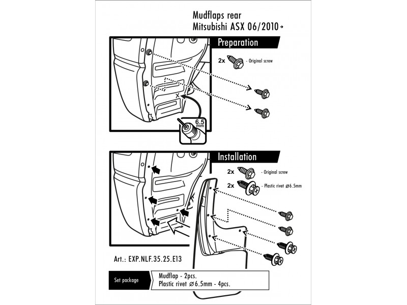 Sada obsahuje 1 pár lapačů. Montáž je velice snadná. Montují se do originálních otvorů vozidel. Součástí balení je spojovací materiál pro přichycení a návod montáže.