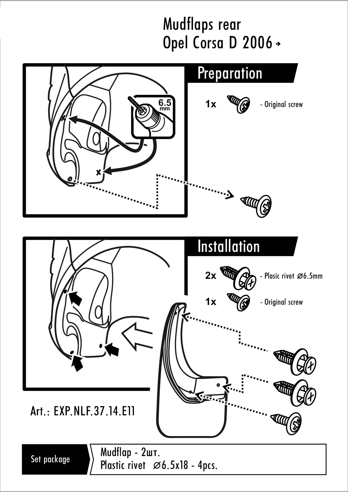 Sada obsahuje 1 pár lapačů. Montáž je velice snadná. Montují se do originálních otvorů vozidel. Součástí balení je spojovací materiál pro přichycení a návod montáže.