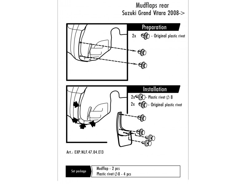 Zástěrky, lapače nečistot, Suzuki Grand Vitara II, 2005-2015, zadní