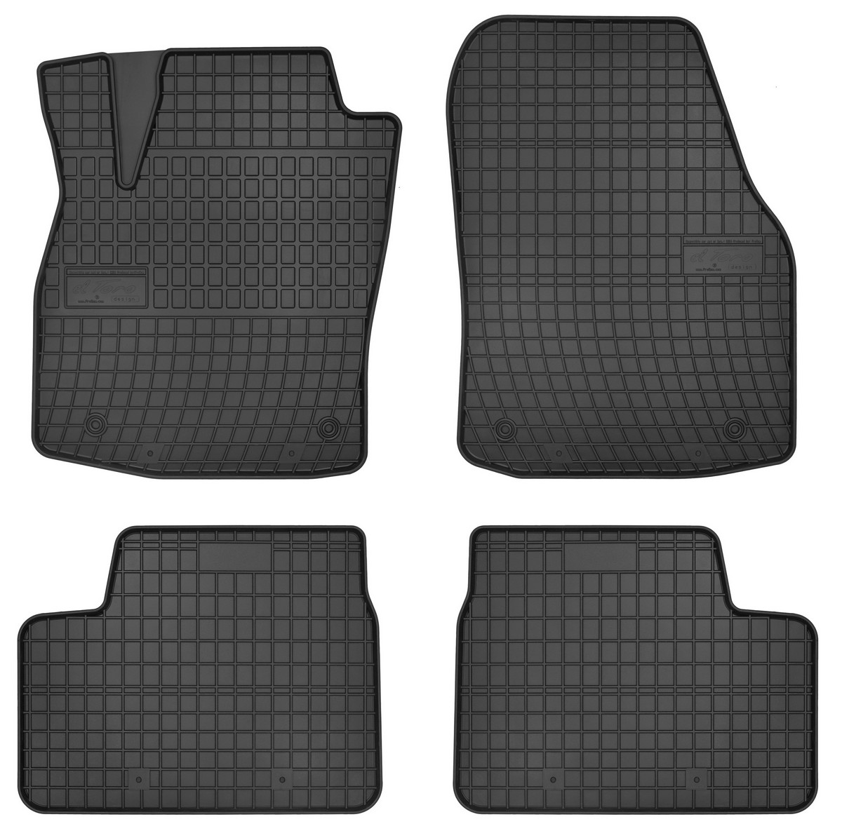 Koberce jsou vyráběny v černém provedení z kvalitní gumy, která má vysokou odolnost a životnost. Gumové rohože se velmi snadno udržují, stačí je pouze vytáhnout z auta a jednoduše opláchnout vodou. Pak stačí kobereček vytřít do sucha nebo nechat volně uschnout. Nehrozí, že by na gumě začala vznikat plíseň nebo se šířil v interiéru auta zápach.