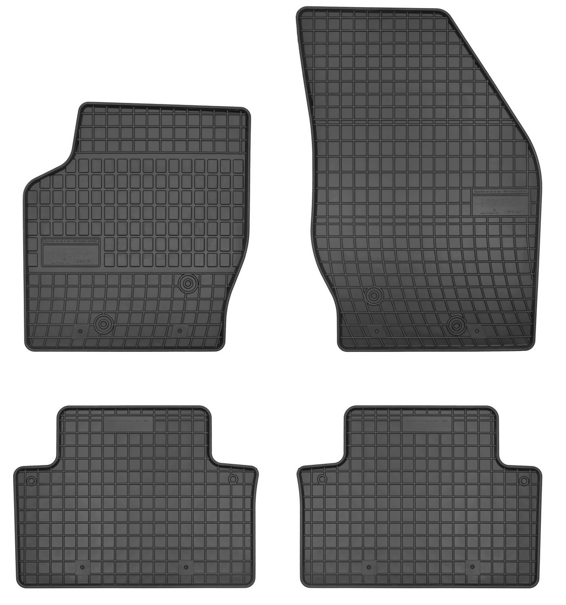 Koberce jsou vyráběny v černém provedení z kvalitní gumy, která má vysokou odolnost a životnost. Gumové rohože se velmi snadno udržují, stačí je pouze vytáhnout z auta a jednoduše opláchnout vodou. Pak stačí kobereček vytřít do sucha nebo nechat volně uschnout. Nehrozí, že by na gumě začala vznikat plíseň nebo se šířil v interiéru auta zápach.