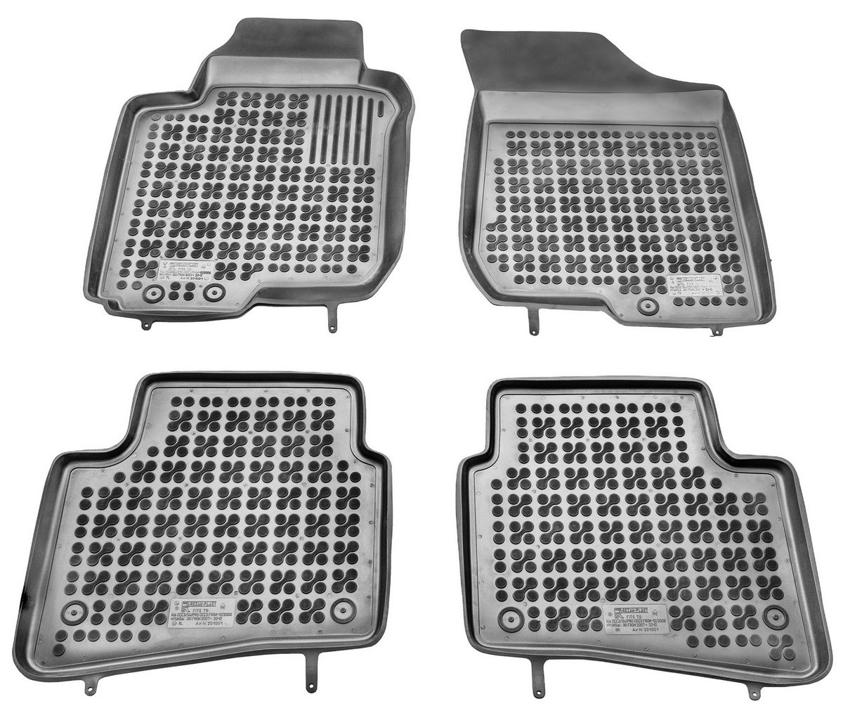 Gumové koberce jsou vyrobeny na míru pro konkrétní modelovou řadu vozidla, vždy tedy perfektně pasují a dokonale chrání podlahu vozu před vodou a nečistotami. Zároveň jsou vyrobeny z kvalitní gumy, která je protiskluzová a lehce udržovatelná, stačí jí omývat pouhou vodou. Kvalitní materiál také zajišťuje dlouhou životnost.