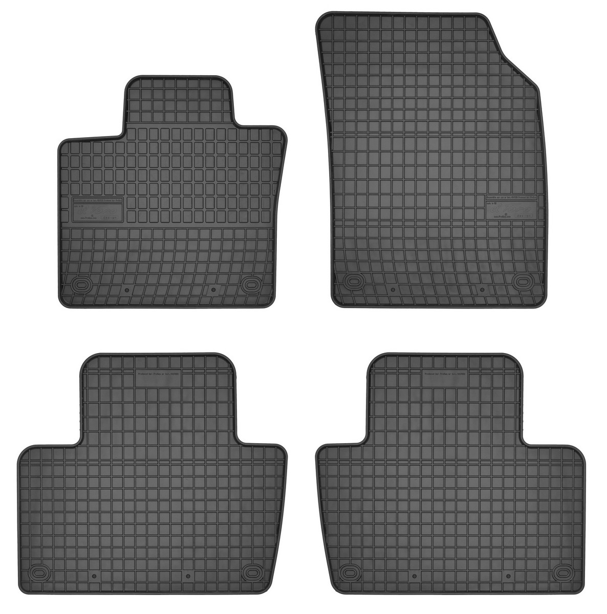 Koberce jsou vyráběny v černém provedení z kvalitní gumy, která má vysokou odolnost a životnost. Gumové rohože se velmi snadno udržují, stačí je pouze vytáhnout z auta a jednoduše opláchnout vodou. Pak stačí kobereček vytřít do sucha nebo nechat volně uschnout. Nehrozí, že by na gumě začala vznikat plíseň nebo se šířil v interiéru auta zápach.