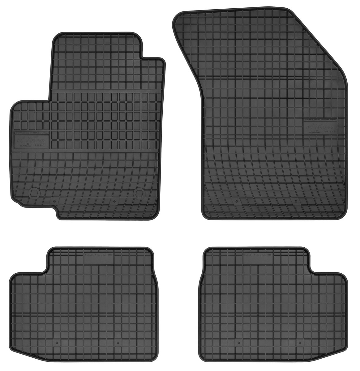 Koberce jsou vyráběny v černém provedení z kvalitní gumy, která má vysokou odolnost a životnost. Gumové rohože se velmi snadno udržují, stačí je pouze vytáhnout z auta a jednoduše opláchnout vodou. Pak stačí kobereček vytřít do sucha nebo nechat volně uschnout. Nehrozí, že by na gumě začala vznikat plíseň nebo se šířil v interiéru auta zápach.