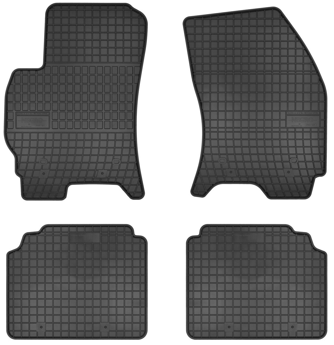 Koberce jsou vyráběny v černém provedení z kvalitní gumy, která má vysokou odolnost a životnost. Gumové rohože se velmi snadno udržují, stačí je pouze vytáhnout z auta a jednoduše opláchnout vodou. Pak stačí kobereček vytřít do sucha nebo nechat volně uschnout. Nehrozí, že by na gumě začala vznikat plíseň nebo se šířil v interiéru auta zápach.