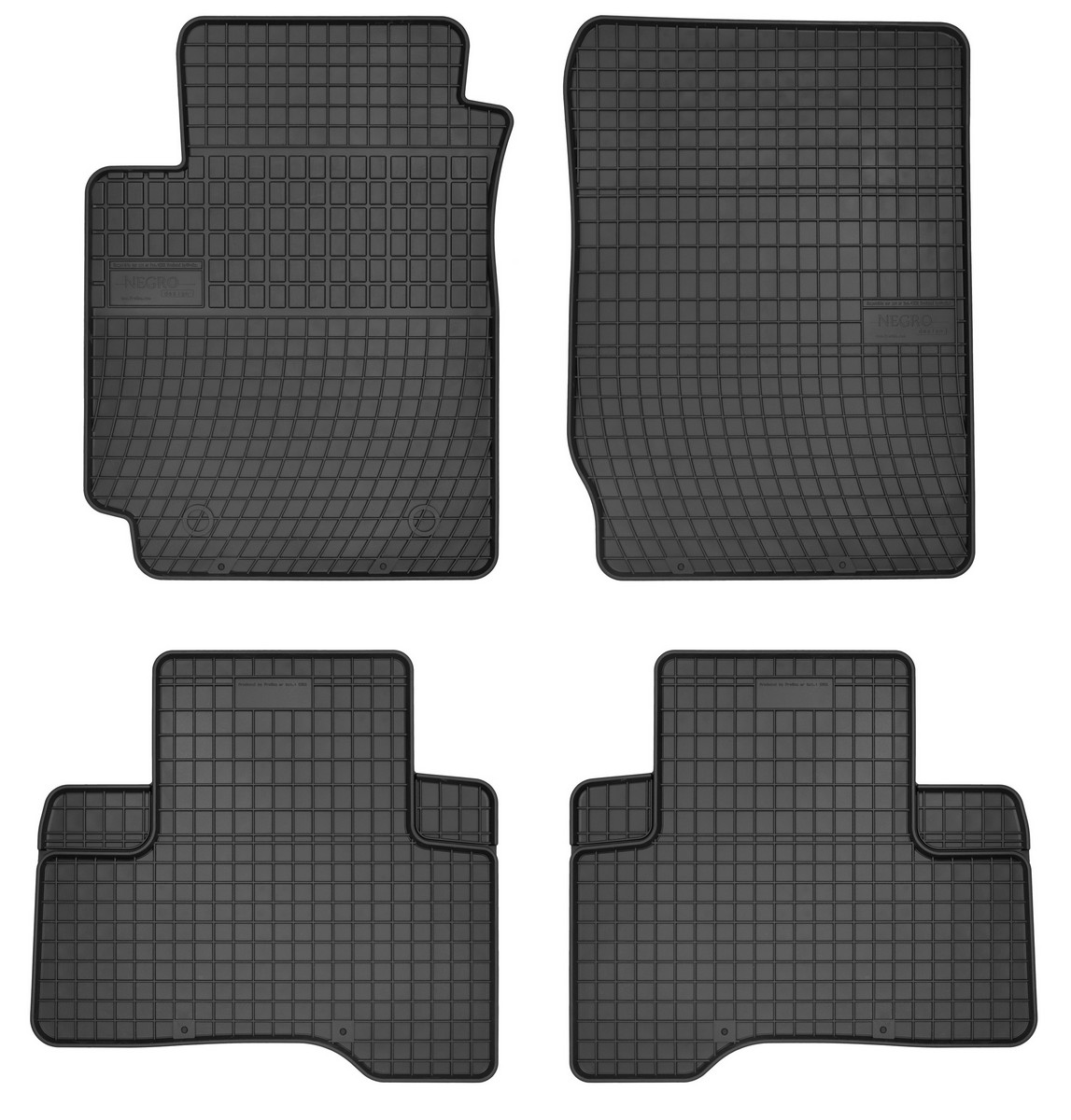 Koberce jsou vyráběny v černém provedení z kvalitní gumy, která má vysokou odolnost a životnost. Gumové rohože se velmi snadno udržují, stačí je pouze vytáhnout z auta a jednoduše opláchnout vodou. Pak stačí kobereček vytřít do sucha nebo nechat volně uschnout. Nehrozí, že by na gumě začala vznikat plíseň nebo se šířil v interiéru auta zápach.