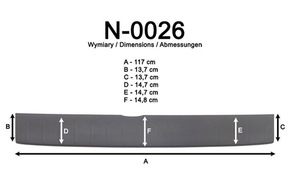 Plastové ochranné lišty na zadní nárazník auta je ochranný a estetický autodoplněk, který ochrání hranu zadního nárazníku před odřením či poškrábáním. Lišta přesahuje lem nárazníku, čímž dokáže zamezit poškození zadního nárazníku při parkování. Rovněž zabraňuje poškození nárazníku při nakládání věcí do kufru.