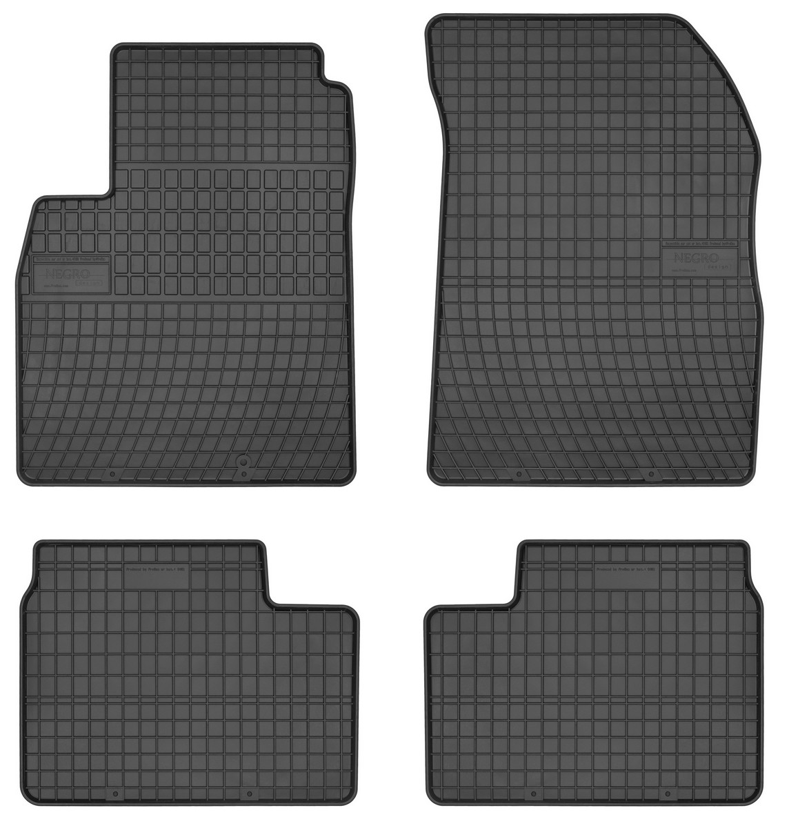 Koberce jsou vyráběny v černém provedení z kvalitní gumy, která má vysokou odolnost a životnost. Gumové rohože se velmi snadno udržují, stačí je pouze vytáhnout z auta a jednoduše opláchnout vodou. Pak stačí kobereček vytřít do sucha nebo nechat volně uschnout. Nehrozí, že by na gumě začala vznikat plíseň nebo se šířil v interiéru auta zápach.