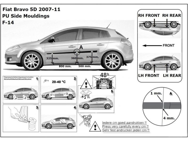 Ochranné boční lišty na dveře, Fiat Bravo, 2007-2014