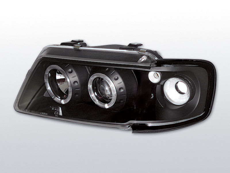 Přední světla projektorová (čočky) s diodovými kroužky Angel Eyes. Černé s integrovanými směrovkami.