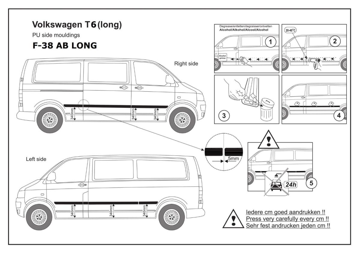 Ochranné boční lišty na dveře, VW T-6, 2015- , dlouhý