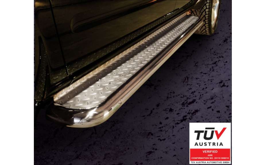 Boční schod dodá Vašemu autu na exkluzivitě. Schody mají velkou šíři, aby nastupování a vystupování z auta bylo co nejpohodlnější! Místa nášlapu disponují vroubkovaným povrchem, který dodává na atraktivitě vozu a pomáhá k lepší stabilitě během nástupu a výstupu.