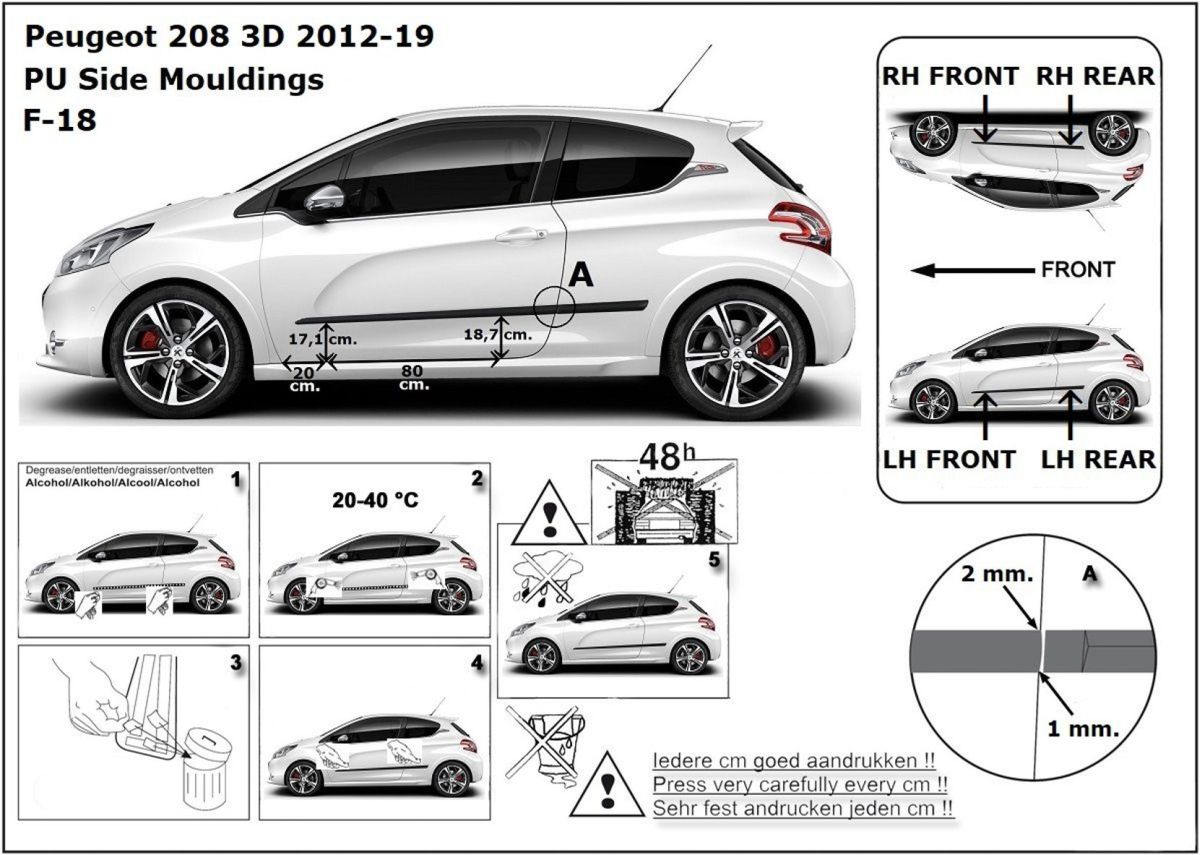 Ochranné boční lišty na dveře, Peugeot 208, 2012-2019, 3 dveř.
