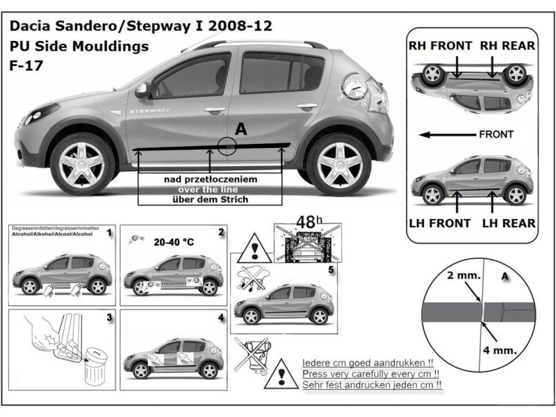 Ochranné boční lišty na dveře, Dacia Sandero Stepway, 2008-2013