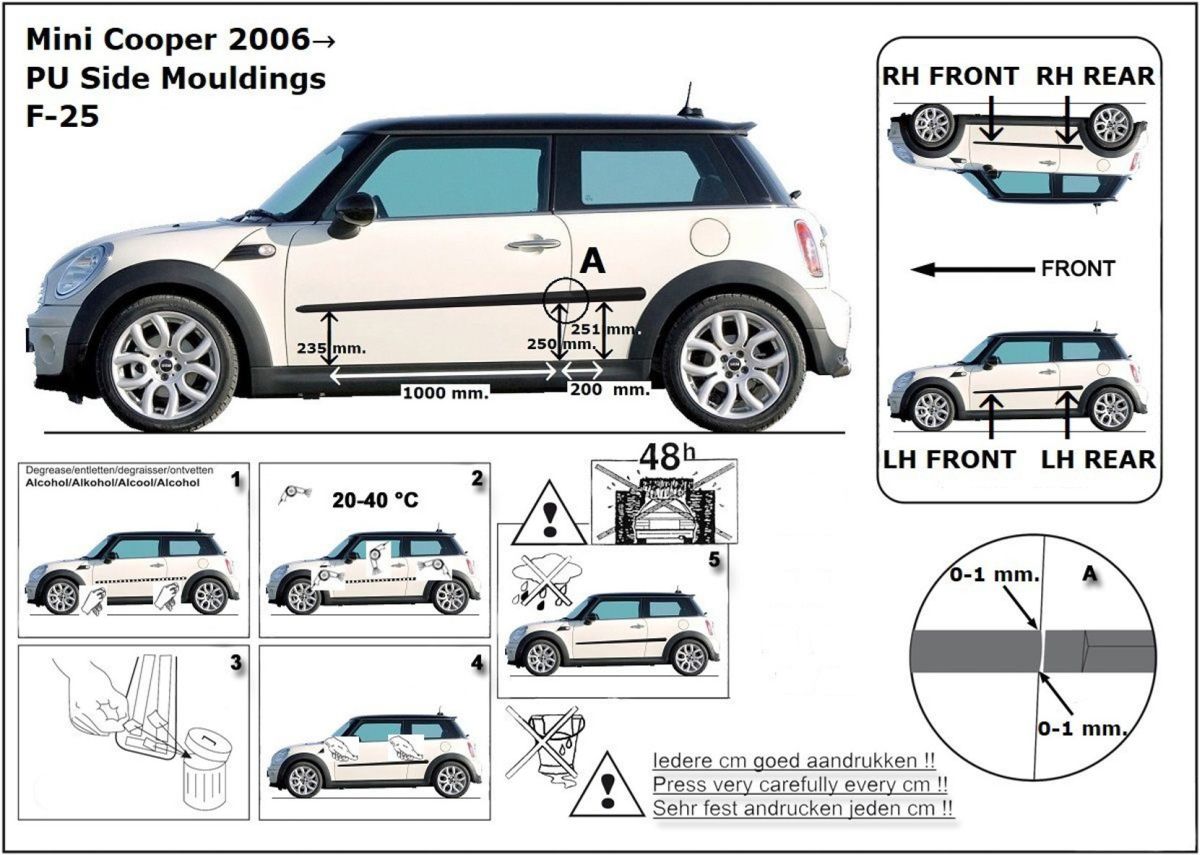 Ochranné boční lišty na dveře, Mini Cooper II, 2006-2013