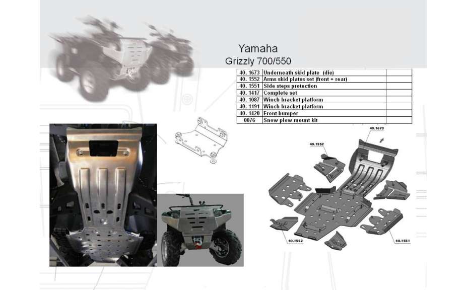 Kryty stupaček pro Yamaha Grizzly 550/700, vyrobené z kvalitního hliníku 4 mm, poskytují skvélé zabezpečení proti poškození a pohodlí při jízdě v terénu.