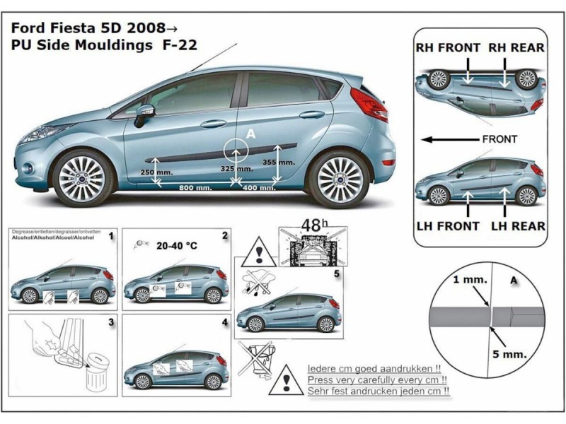 Ochranné boční lišty na dveře, Ford Fiesta VI, 2008-2017, 5-dveř.
