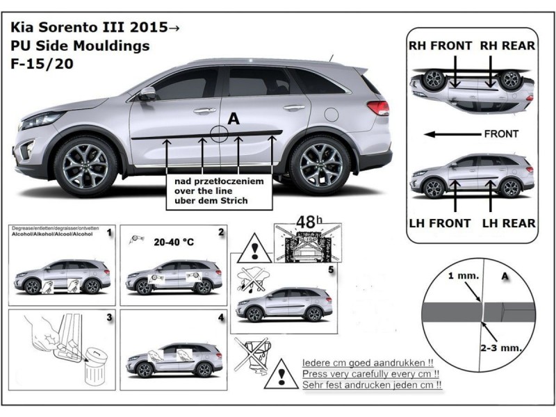 Ochranné boční lišty na dveře, Kia Sorento III, 2014-2020