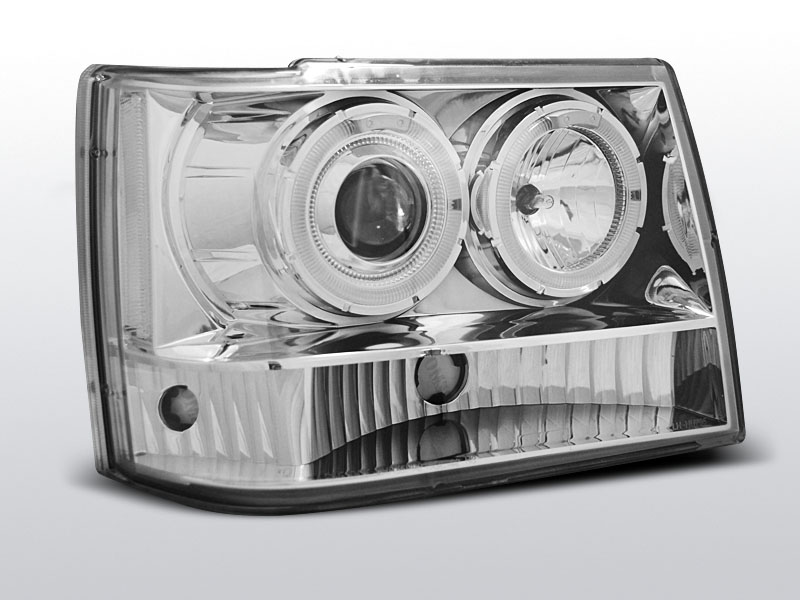 Přední světla projektorová (čočky) s diodovými kroužky Angel Eyes. Chromované