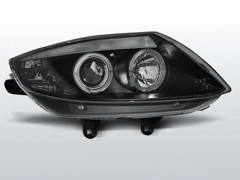 Přední světla projektorová (čočky) s diodovými kroužky Angel Eyes. Černé s integrovanými směrovkami.