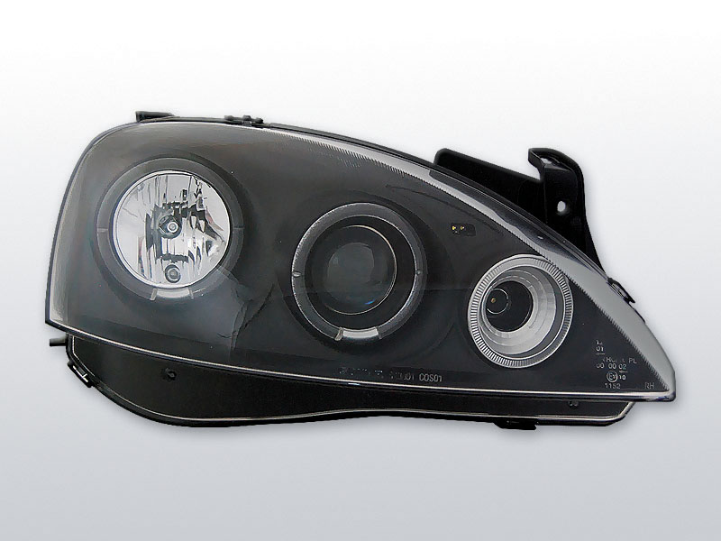 Přední světla projektorová (čočky) s diodovými kroužky Angel Eyes. Černé