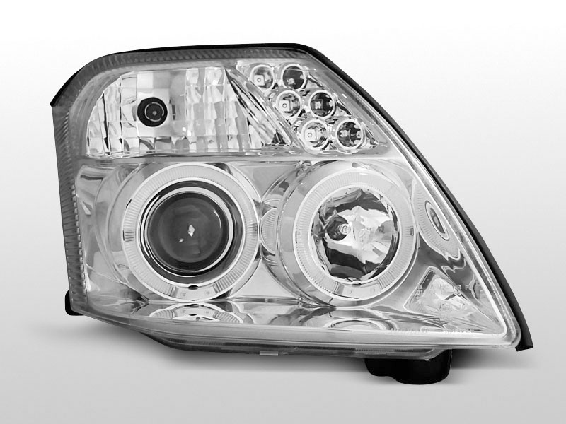 Přední světla projektorová (čočky) s diodovými kroužky Angel Eyes. Chromované