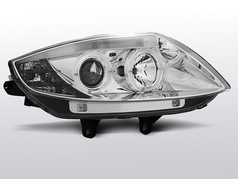 Přední světla projektorová (čočky) s diodovými kroužky Angel Eyes. Chromované s integrovanýma směrovkama.
