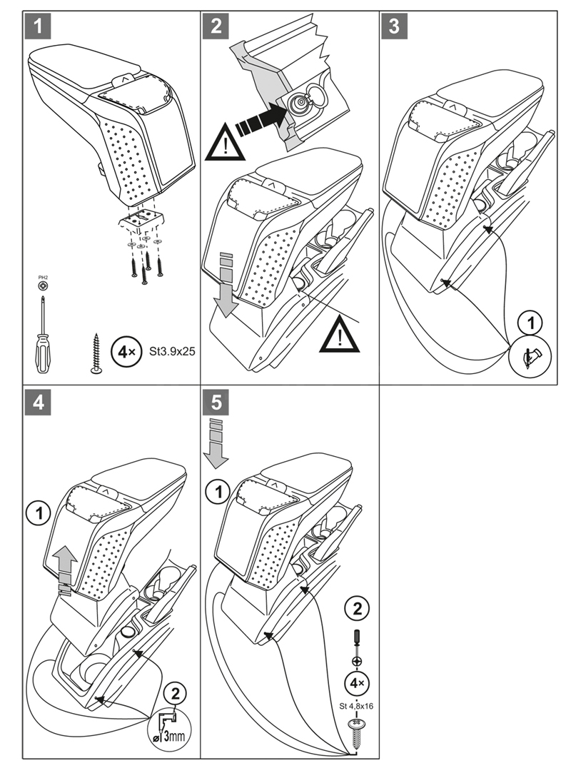 Montáž samotné opěrky je naprosto jednoduchá, není nutné navštěvovat autoservis. Návod je součástí balení. Adaptéry pro montáž loketní opěrky jsou vyráběny na konkrétní typy vozidel, a proto dokonale pasují. Nedostane se Vám do rukou žádný univerzální adaptér, který by způsobil problémy při montáži.