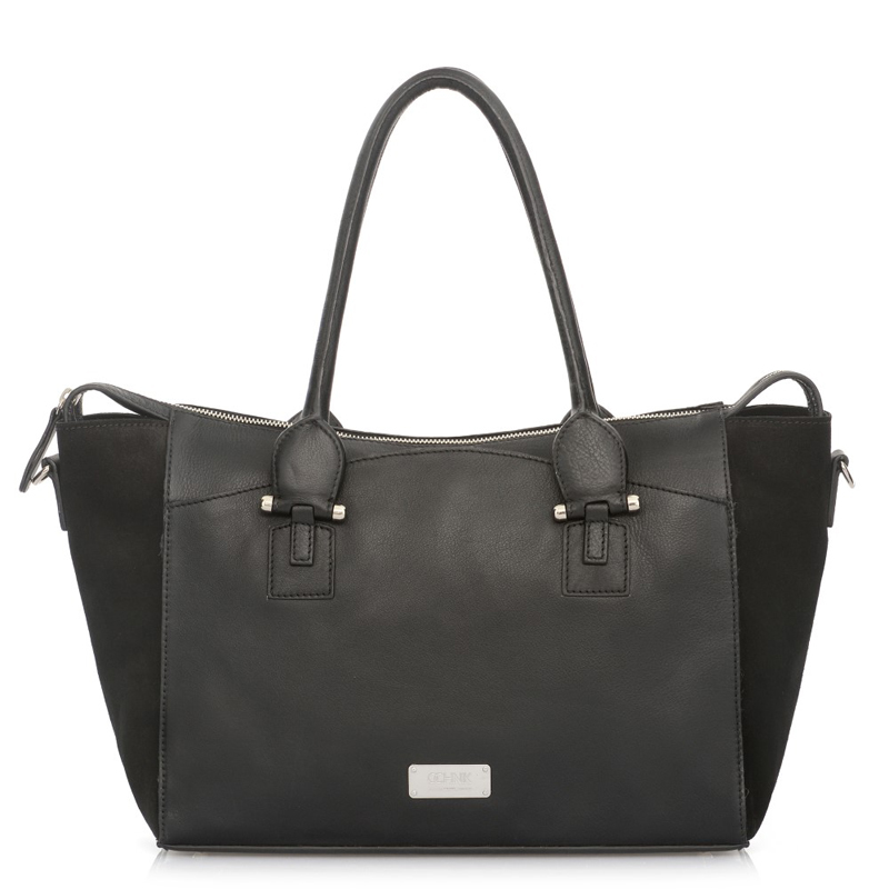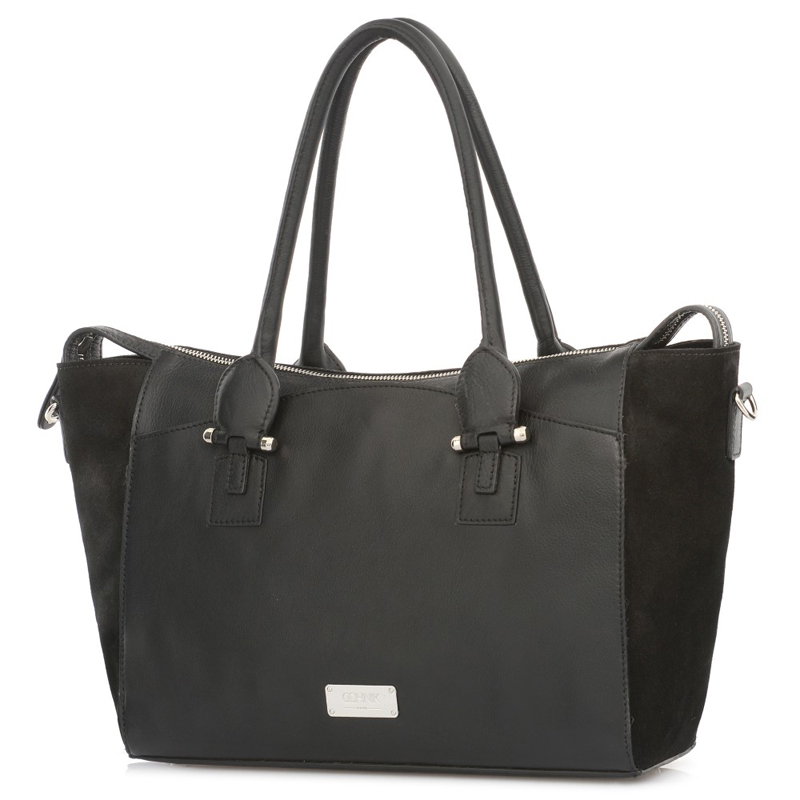 Černá kožená kabelka do ruky, ideální pro každodenní nošení s nádechem elegance.